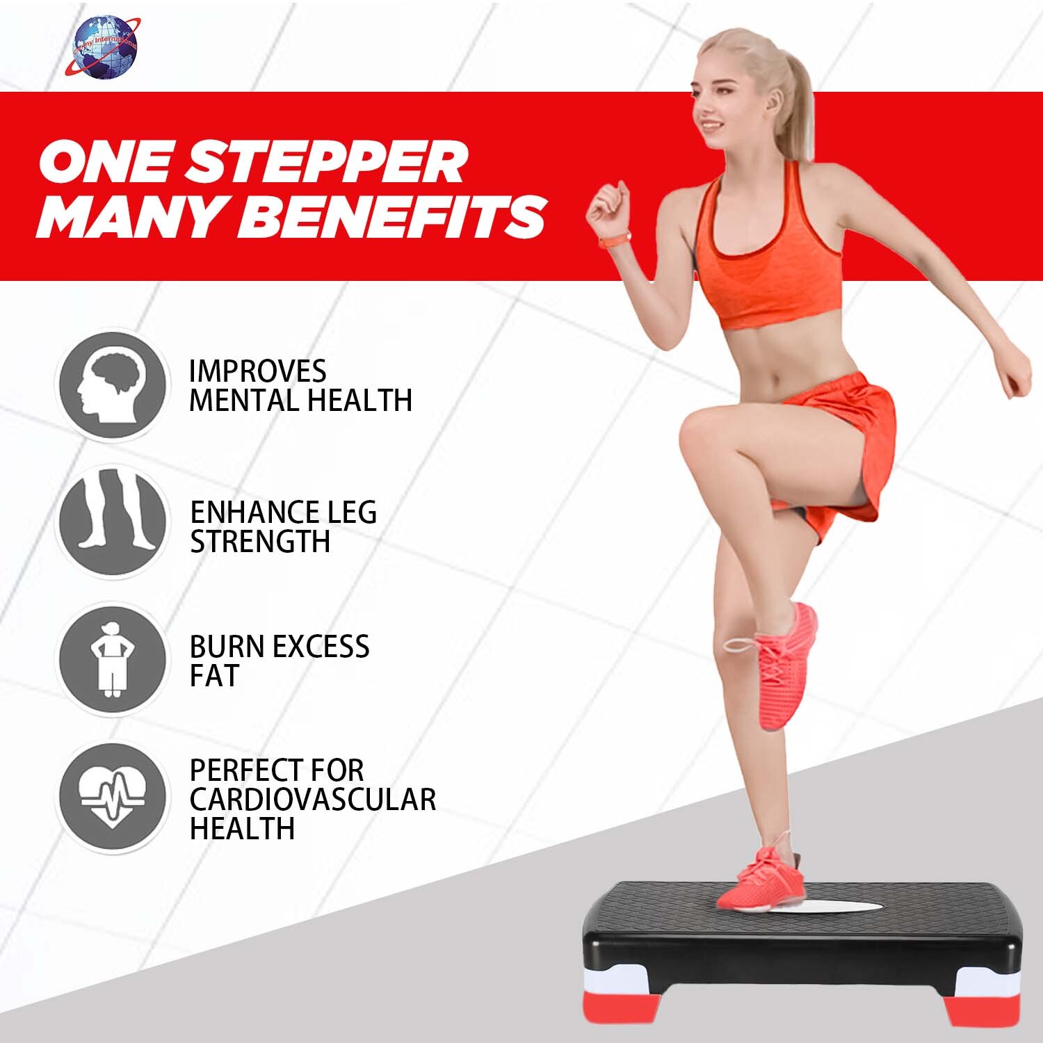 - Step aerobics involves the use of a step platform. With its help, they perform jumps, jumps, steps that imitate the descent and ascent of the stairs. Exercises improve the mobility of the joints, especially the knees, and strengthen the muscles. Performing exercises with cheerful music makes the workout energetic and dynamic.