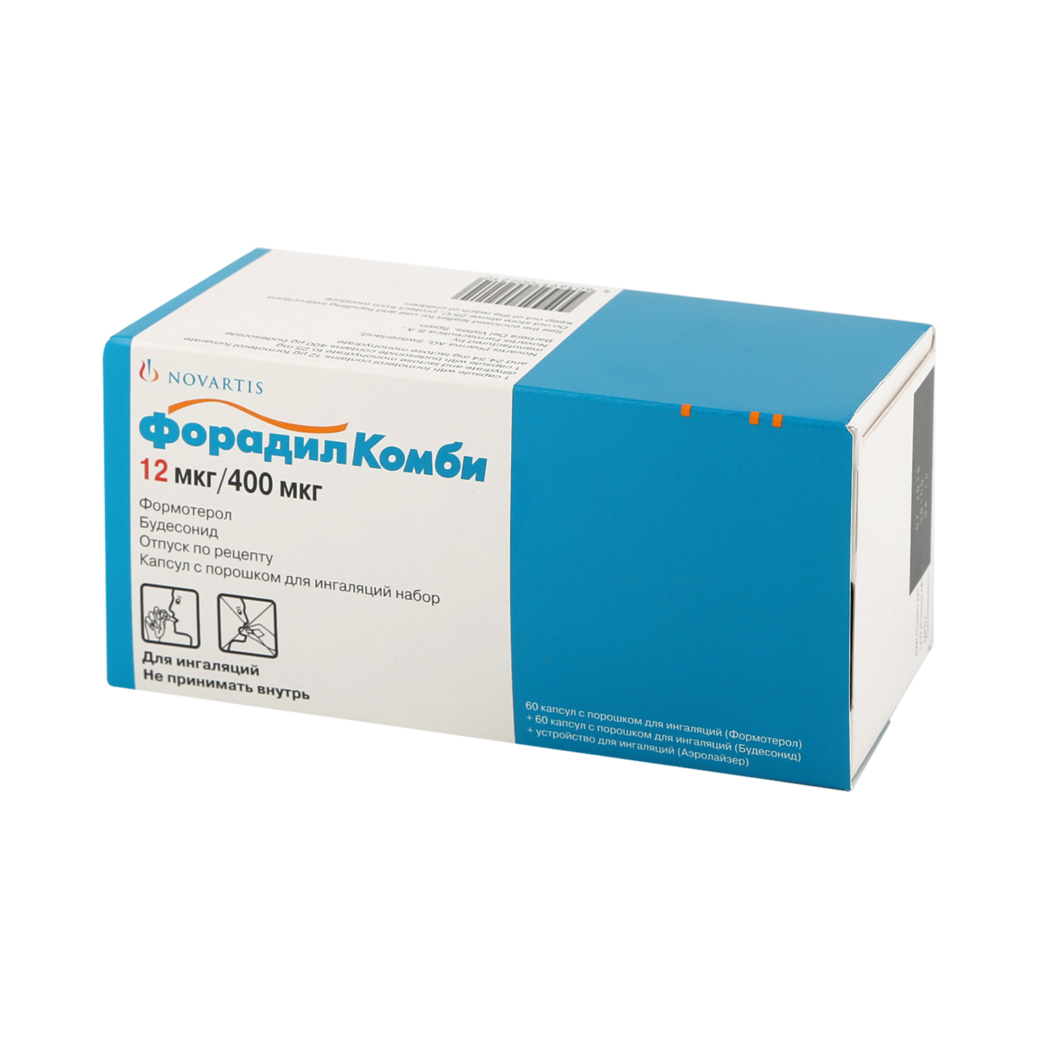Foradil Combi | Caps. reg. No.: LSR-003336/09 Date of re-registration: 23.09.20 | NOVARTIS PHARMA (Switzerland) Produced by: NOVARTIS PHARMA STEIN (Switzerland) NOVARTIS PHARMACEUTICA (Spain) PHARMACHEMIE (Netherlands) Primary packaging: NOVARTIS PHARMACEUTICA (Spain) PHARMACHEMIE (Netherlands) Secondary packaging and release quality control: NOVARTIS PHARMACEUTICA (Spain) | ||