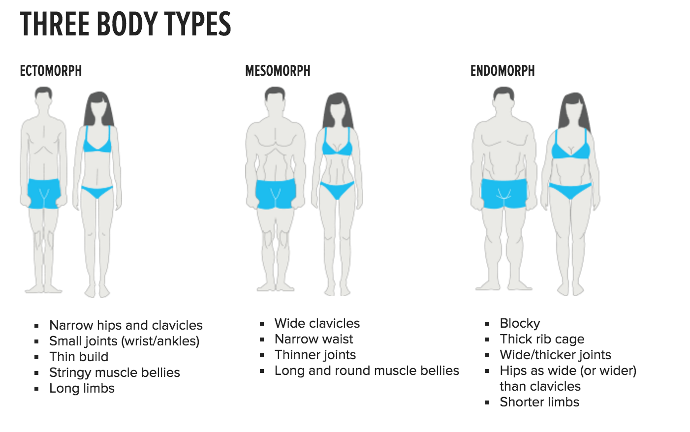 Back in the 1940s, psychologist William Sheldon classified people into three categories (so-called somatotypes) based on their body structure: endomorphs, mesomorphs, and ectomorphs.