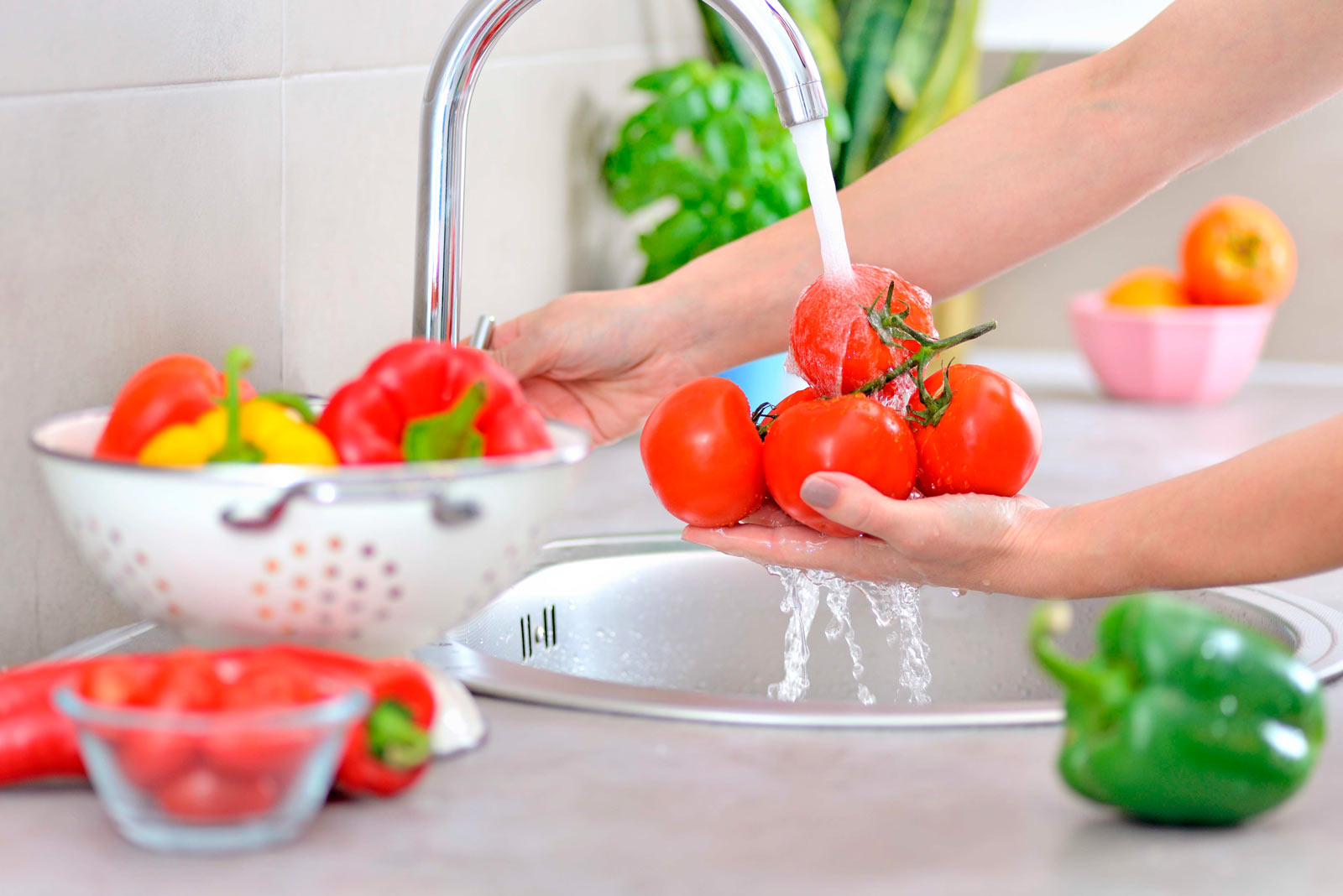 Wash your hands thoroughly with soap and warm water before washing vegetables or fruits.