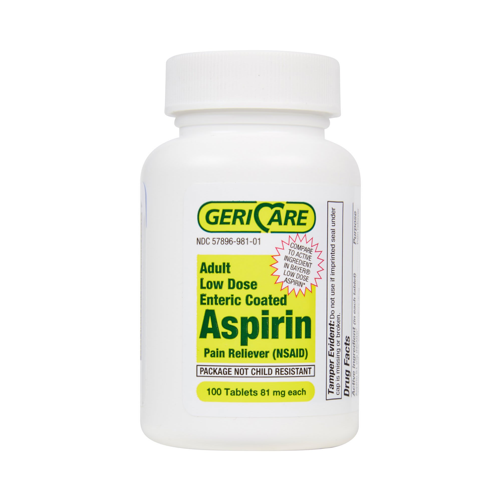 - Low-dose aspirin: 81 mg per tablet