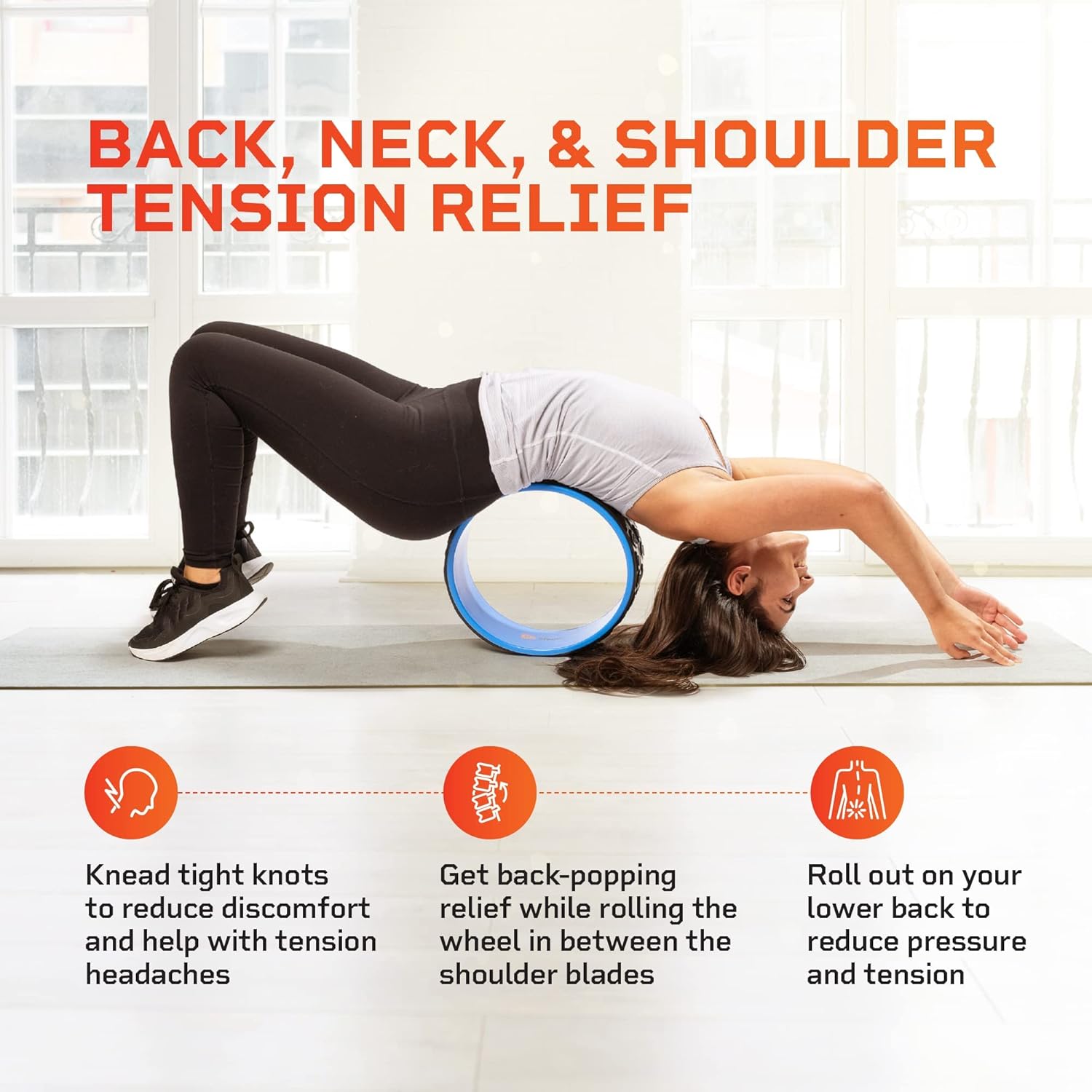 Lie on your back on the roller, while leaning on the lower edge of the shoulder blades. Roll your back from the waist to the top of the shoulder blades 5-6 times.