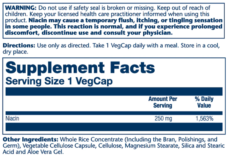 Supplemental niacin can cause unpleasant side effects, like niacin flush. Speak with a healthcare professional before you start taking a niacin supplement.