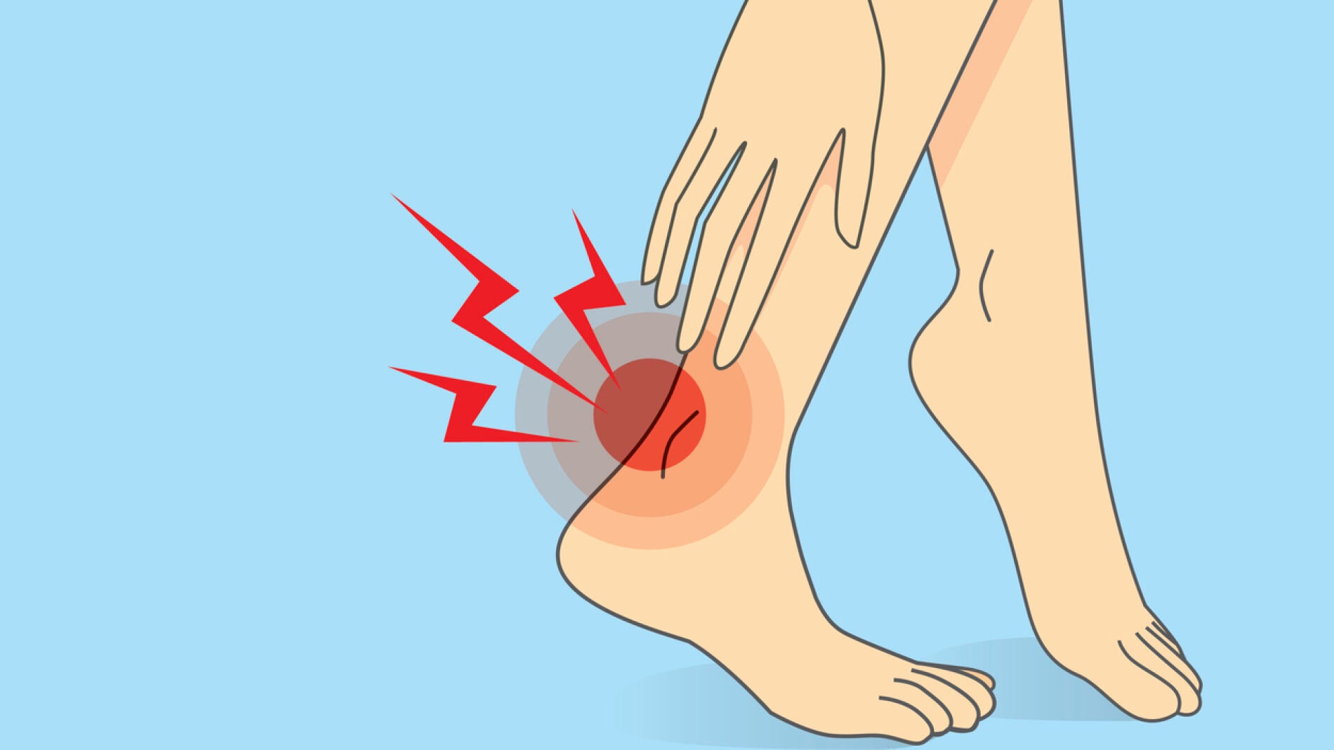 - Intermittent, sharp pain in the posterior heel area