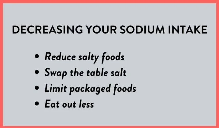 - Continue to reduce sodium intake gradually until you reach your target